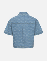 ALLOVER LOGO JACQUARD AND RHINESTONE SEAGULL FASHION FIT DENIM SHIRT
