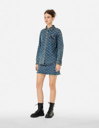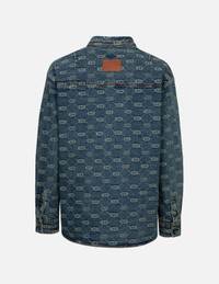 2EAHTW4SJ4026BFDN Offering a boyfriend-inspired silhouette, this denim shirt jacket can be worn as either a shirt or a jacket. The fabric features the brand's signature woven-in logo pattern, lending the design a distinctive touch. One of the standout details is the 3D embroidered seagull adorning the large front pocket, adding a visually arresting element. - Boyfriend fit - 99% Cotton, 1% Spandex - Allover logo jacquard and seagull embroidery - Button fly, 1 pocket - Godhead leather patch