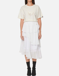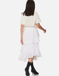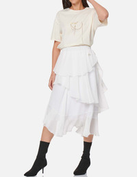 2ESGNW1KL281FF Considerably designed with asymmetric layers of white sheer fabric, this long skirt is peppered with gold seagull applique on the front. The elasticated waistband ensures a comfy fit this summer. - Fashion fit, elasticated waistband, asymmetric layered design - Seagull applique