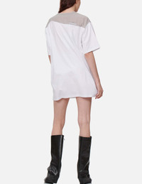 2ESGNW2TU624XXCT This cotton-jersey oversize tunic comes with asymmetric mesh panel on both panels, featuring a bold seagull and handwritten logo on the front, while the back panel is punctuated with logo embroidered applique. Team yours up with short boots to channel military chic this summer. - Oversize tunic - Fabric blocking design - Seagull and handwritten Kuro logo print, EVISUKURO logo embroidered applique - Crew neck, short sleeves - Body: 100% Cotton; Mesh panel: 100% Polyester