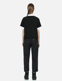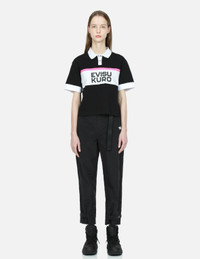 2ESGNW3PT290HWNY Fitting high on the waist and with a relaxed tapered fit, these pants by EVISUKURO will help you create a leg-lengthening look. They also feature belted cuffs as well as glossy seagull print for extra coolness. - 100% Nylon - Relaxed fit, high waist - Kamon and glossy seagull prints - Logo printed webbing belt