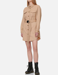 2EAGNW1DR269LFWX Accentuating the feminine curves with a belted design, this shirt dress helps you put together an urban chic outfit effortlessly. You can even pair it with boots or heels to switch between cool and elegant looks. - 40% Wool, 30% Nylon, 30% Rayon - Loose fit - Detachable belt - Logo, Kamon and seagull embroideries - 2 chest pockets