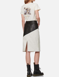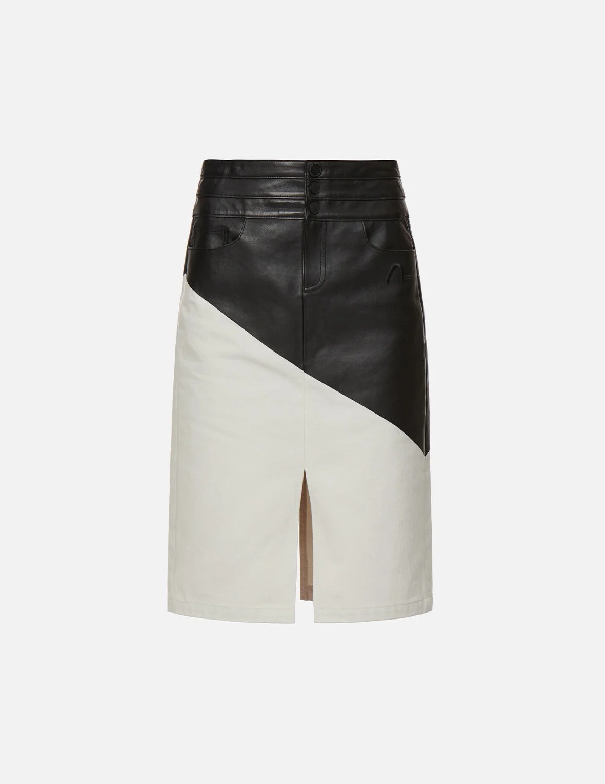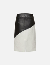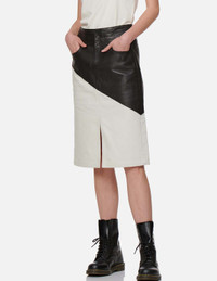 2EAGNW1SK199XXDN This mid-length skirt is constructed with a combination of black leather and white denim for a sharp color and textural contrast, elevating your monochrome outfit to new heights of chic. - 1: 100% Leather; 2: 100% Cotton - Regular fit - Front and back slits - Triple waistbands - Seagull embroidery - 2 pockets - Signature logo leather badge