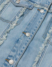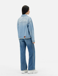2ESHTW5DJ4003OSDN With a deconstructed style as its theme, this denim jacket features a front design that deliberately exposes raw edges, adding an edgy vibe, while the exquisite Seagull embroidery enriches the overall visual effect. The back showcases an artistic font logo with a distressed effect, embodying a collision of avant-garde and individuality. This jacket not only adds depth to any outfit but also serves as a perfect choice for street fashion, making it suitable for pairing with various styles of clothing. - Oversized - 57% Cotton, 43% Lyocell - Seagull embroidery - Deconstructed stitching and logo - Botton fastening, 2 pockets