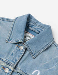 Deconstructed Logo and Seagull Embroidery Oversized Denim Jacket