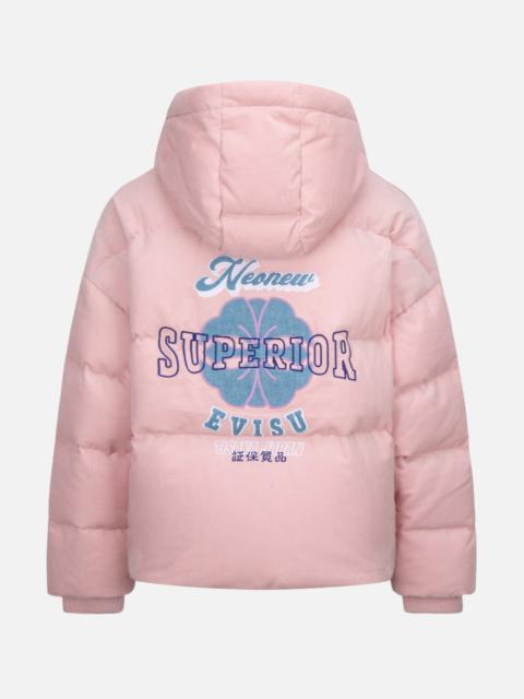 2EAHTW1NJ255OSCD EVISU knows how to make outerwear refined and sophisticated. This down jacket is made from corduroy, featuring denim appliqués of Kamon and logo on the back, as well as seagull embroidery at left chest for a subtle textural contrast. - Oversize fit - Kamon and logo denim appliqués, seagull and slogan embroidery - Hooded jacket, long sleeves, 2 pockets - Zip fastening - Custom Made EVISU Heritage Tag - Body: 100% Cotton; Lining: 100% Nylon CARE DO NOT WASH DO NOT BLEACH DO NOT TUMBLE DRY DO NOT IRON DRY CLEAN ONLY