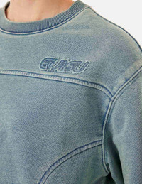 Distressed Appliqué Embroidery Washed Fashion Fit Cropped Sweatshirt