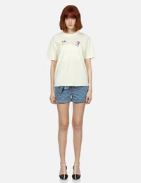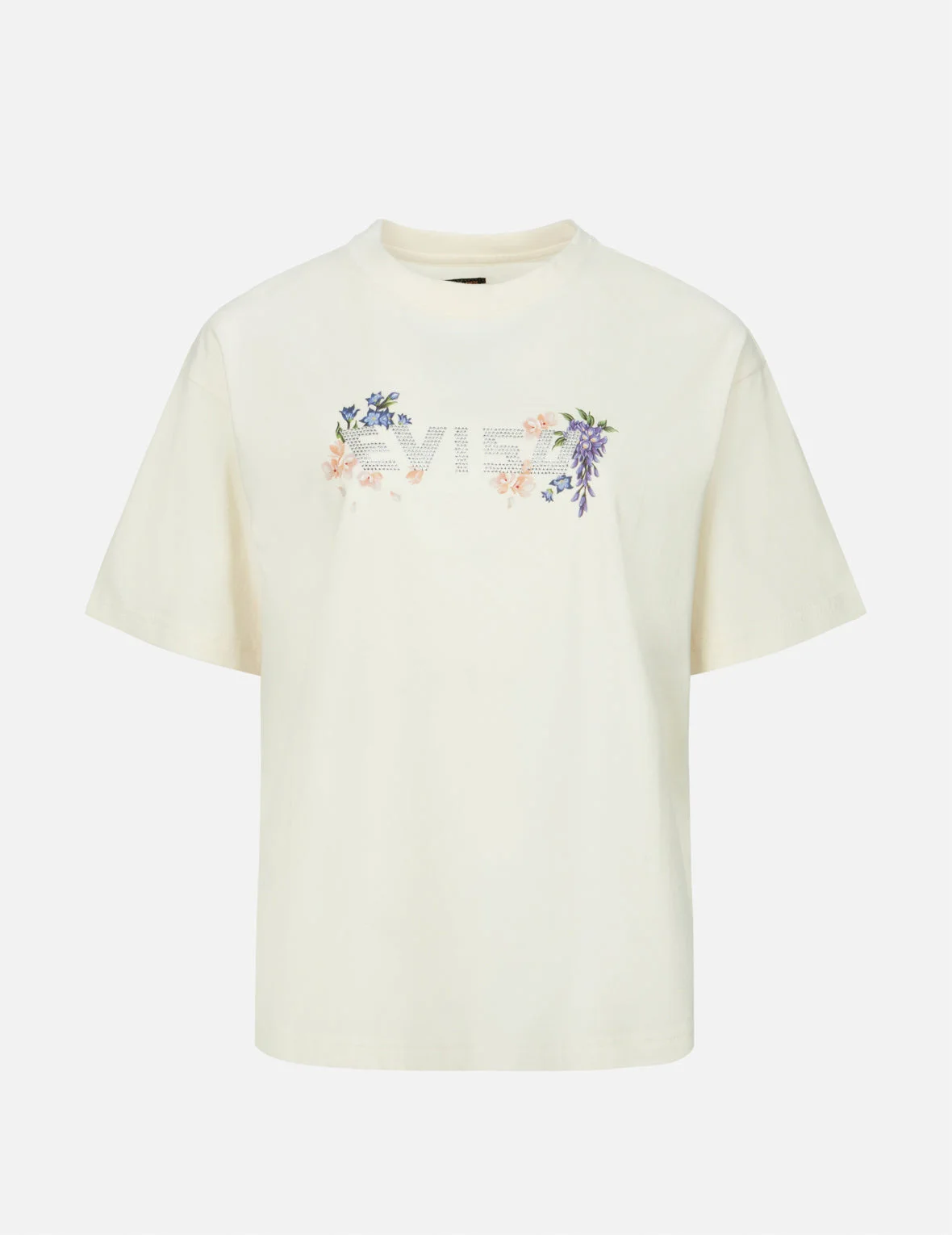 2ESHTW4TS4084OSCT This T-shirt features a romantic and enchanting purple floral print, complemented by a dazzling Rhinestone EVISU logo, creating a captivating and eye-catching effect. FIT & STYLING: OVERSIZE CARE HAND WASH INSIDE OUT AND SEPARATELY DO NOT BLEACH HANG DRY ONLY COOL IRON ON REVERSE SIDE IF NEEDED STEAM IRONING MAY CAUSE IRREVERSIBLE DAMAGE DO NOT DRY CLEAN DO NOT IRON ON PRINT DO NOT IRON THE DECORATION