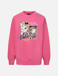 FORTUNE CAT AND DARUMA PRINT OVERSIZED SWEATSHIRT