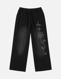 2ESHTW6SP4032FFCT These sweatpants feature spider web rhinestone graphic details, paired with a drawstring waist for casual comfort. - 100% Cotton - Spider web rhinestone graphic - Drawstring waist - 2 side pockets
