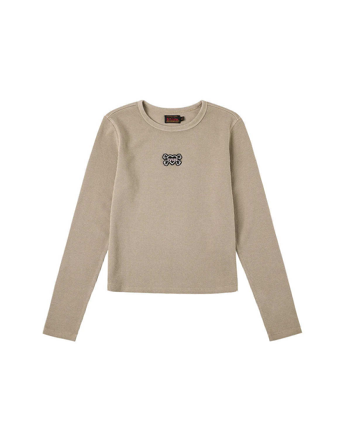 2EAHTW5TL4055FFCT EVISU uses soft waffle fabric that is comfortable and breathable, perfectly hugging the skin. This long-sleeve top features a unique heart-shaped skull EVISU patch embroidery, showcasing individuality and style. - Fashion fit - 73% Cotton, 27% Polyester - Heart-shaped skull EVISU patch embroidery