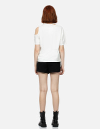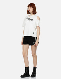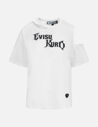 2ESGNW4TS6028FFCT This T-shirt features hollow details on the right side of the collar and left shoulder, with a heat transfer outline on the EVISUKURO print on the front chest. Additionally, there is a holographic Kamon patch on the left hem, adding a sparkling highlight and a luxurious yet edgy streetwear vibe to the overall design. - Fashion fit - 100% Cotton - Heat transfer logo print - Holographic Kamon patch - Hollow details