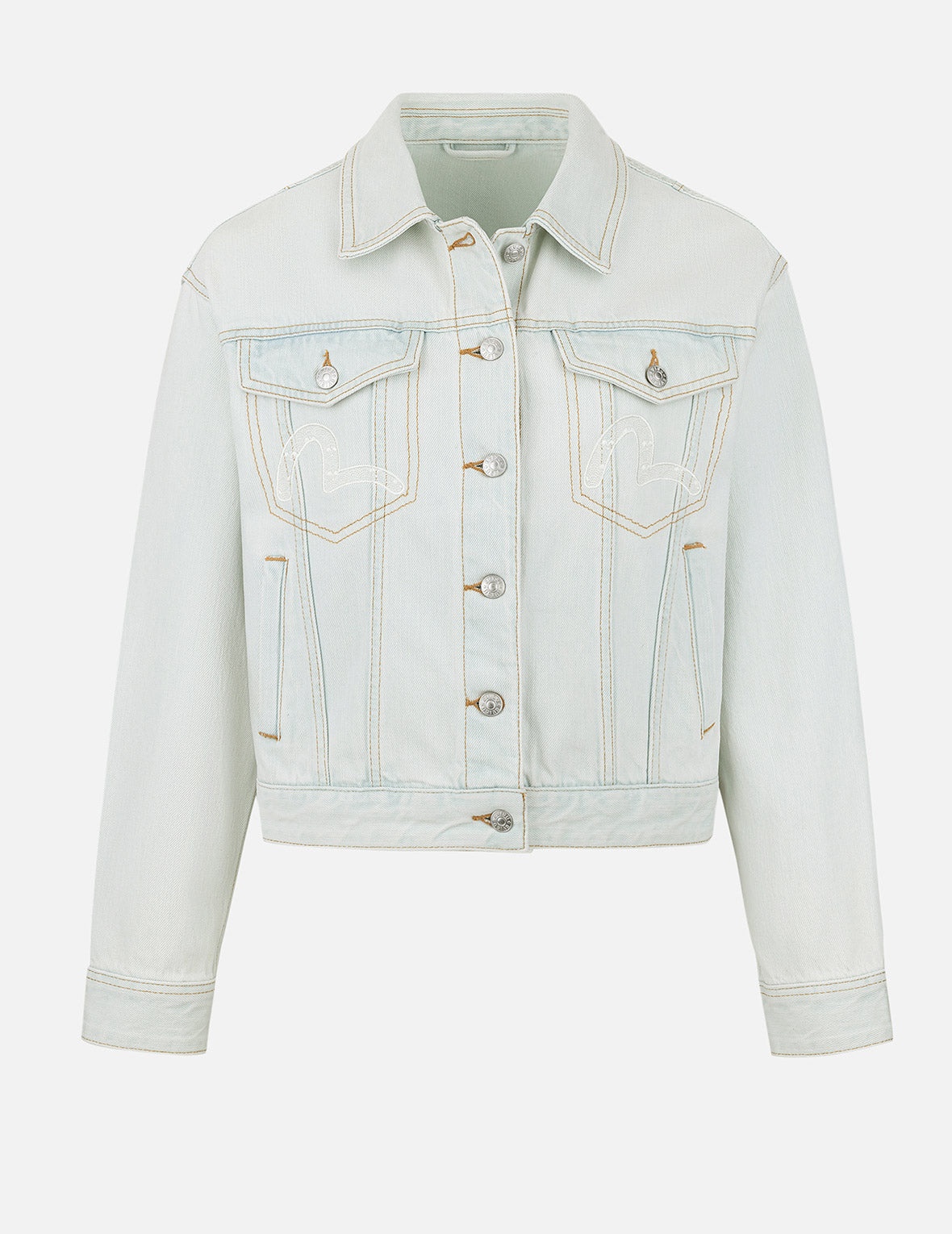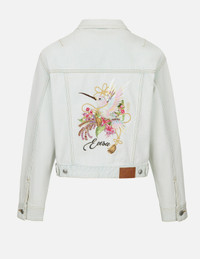 2ESHTW5DJ4002LFDN Featuring a hummingbird and magnolia theme, this denim jacket showcases exquisite embroidery that exudes an air of nobility, complemented by brand logo embroidery that adds a strong brand style. The front is adorned with a Seagull embroidery, bringing a touch of vibrancy and playfulness to the overall design. - Loose fit - 100% Cotton - Hummingbird, magnolia, logo, and Seagull embroidery - Button fastening, 4 pockets