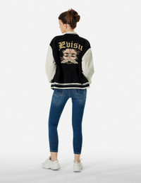 KAMON AND LOGO EMBROIDERY FASHION FIT VARSITY JACKET