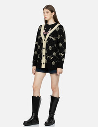 KAMON AND LOGO JACQUARD LOOSE FIT CARDIGAN