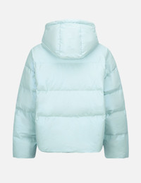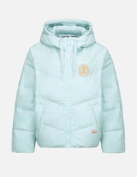 2EAHTW1NJ253OSPL This pearlized mint color down jacket offers a novel style to keep you warm this fall. Cut for loose fit, the jacket features a sophisticated embroidery of gold Kamon and CRAFT text at left chest, while the drawstring is peppered with EVISU logo for a cool take. - Oversized fit - Kamon and text embroidery, EVISU logo drawstring - Drawstring hood, long sleeves, 2 pockets - Zip fastening - Custom Made EVISU Heritage Tag - Body: 100% Polyester; Lining: 100% Nylon