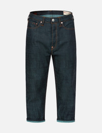 2ESHTM4JE703527DN This pair of cropped jeans from EVISU stands out with its remarkable brushstroke Daicock and exquisite embroidery. The vibrant gold-threaded Kamon and koi fish playing in water embroidery details bring the EVISU's craftsmanship and artistic elements to life. - 2027 Cropped fit - 100% Cotton - 11.4 oz denim - Kamon and koi embroidery - Brushstroke Daicock print - Button fly, 5 pockets