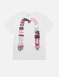 2EAHTW5TS4038BFCT Featuring a graffiti theme, this EVISU T-shirt showcases overlapping logo prints on the front and a Daicock print on the back, incorporating elements like slogans, logos, and skulls. The overall design presents a strong contrast of colors and a rebellious style. - Boyfriend - 100% Cotton - Logo and graffiti Daicock print