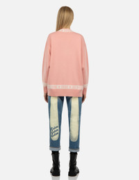2EAHTW2SR357LFWX Cut for a loose fit, the sweater is knitted with a short collar, featuring EVISU logo, Kamon and motto jacquard in contrasting pallete. Team yours up with cropped jeans and boots when the temperature drops. - Loose fit - EVISU logo, Kamon and motto jacquard - Crew neck, long sleeves, ribbed trims - Custom Made EVISU Heritage tag - 47% Wool, 38% Viscose, 10% Nylon, 5% Cashmere FIT & STYLING: LOOSE CARE HAND WASH DO NOT BLEACH RESHAPE AND LAY FLAT TO DRY COOL IRON ON REVERSE SIDE IF NEEDED STEAM IRONING MAY CAUSE IRREVERSIBLE DAMAGED DO NOT DRY CLEAN