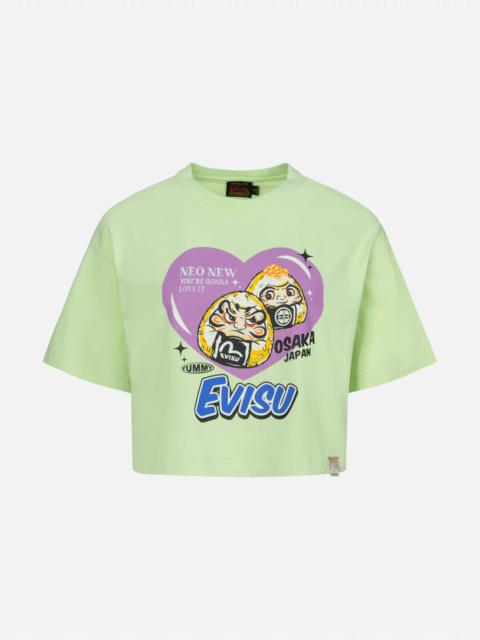 2ESHTW4TS4048XXCT Featuring a vintage-style rolled edge design, this T-shirt showcases a unique spirit and youthful charm. The front of the shirt is printed with a brand logo, while the back features a composition with a packaging poster design as the background, highlighting the Takoyaki Daruma print. FIT & STYLING: REGULAR CARE MACHINE WASH COLD INSIDE OUT DELICATE CYCLE DO NOT BLEACH HANG DRY ONLY COOL IRON ON REVERSE SIDE IF NEEDED STEAM IRONING MAY CAUSE IRREVERSIBLE DAMAGE DO NOT DRY CLEAN DO NOT IRON ON PRINT