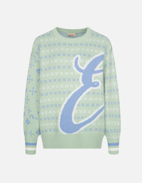 2EAHTW2SR356LFWX EVISU’s sweater has a warm tone and classic jacquard pattern with bold EVISU logo calligraphy across both panels. Cut for a loose fit, the sweater adds a lively vibe to your winter athleisure look. - Loose fit - EVISU logo calligraphy jacquard - Crew neck, long sleeves, ribbed trims - 47% Wool, 38% Viscose, 10% Nylon, 5% Cashmere