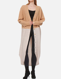 2EAGNW1CN479LFWL EVISUKUROs 2-in-1 cardigan can be worn long or short in 4 different ways. The color blocking piece is decorated with KURO logo, Kamon and seagull embroidery for extra trendiness. - Loose fit - 2-in-1 design - KURO logo, Kamon and seagull embroidery - Button fastening, long sleeves