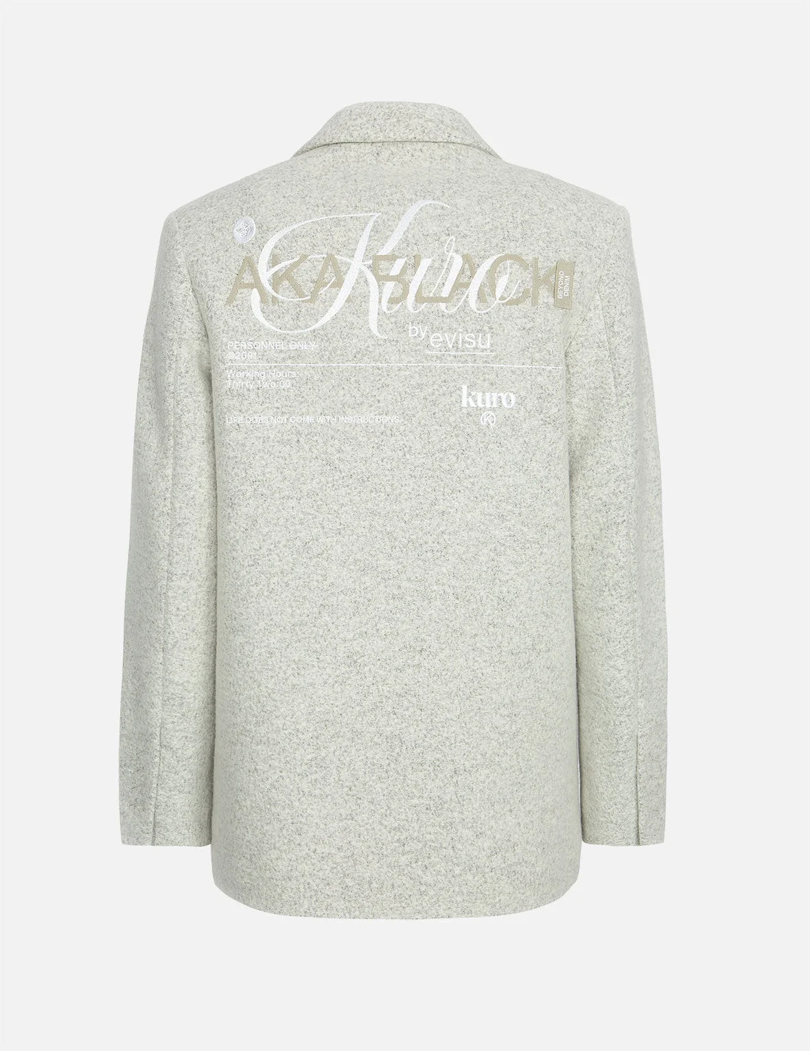 2EAGNW2BZ708LFWN A creative mix of street and sartorial fashion, this blazer is crafted from wool blend material for a modern look. Finished with layered logo and slogan embroideries, this piece shows you exactly why EVISUKURO is the powerhouse of rebel-cool style. - 78% Wool, 22% Nylon - Loose fit - Logo and slogan embroideries - 3 pockets