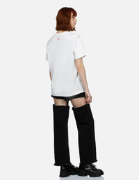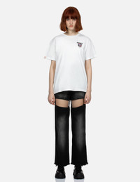 LOGO PRINT AND DARUMA EMBROIDERY BADGE BOYFRIEND T-SHIRT