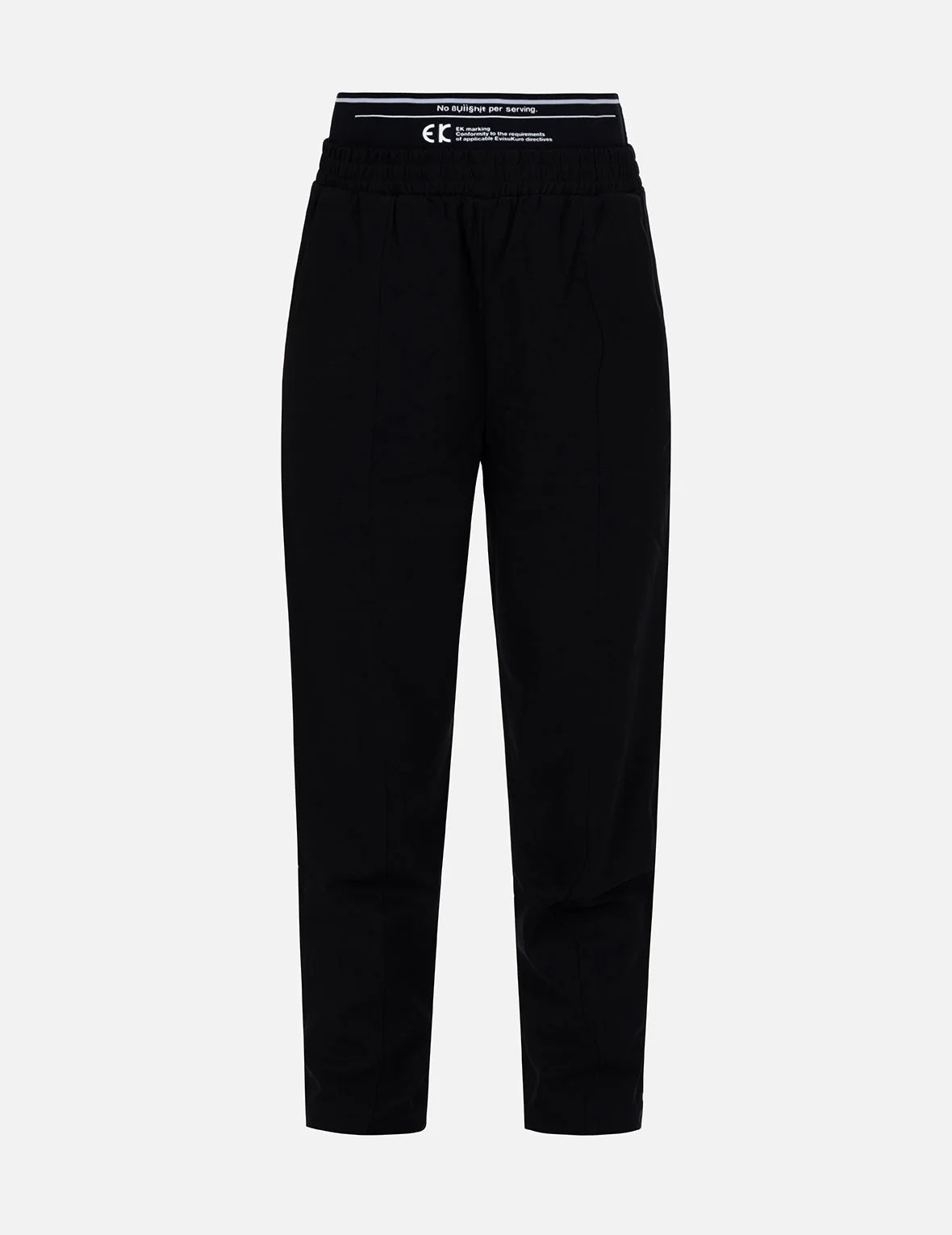 2EAGNW2PT260FFPS Renowned for its edgy take on casual staples, EVISUKURO’s tapered pants come with logo and slogan print on the elasticated waistband, while the back pocket is peppered with the motto of the collection such as “Life does not come with instructions”. - Fashion fit - Logo, slogan and seagull print - Elasticated waistband, 3 pockets - 70% Polyester, 28% Rayon, 2% Spandex