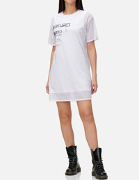 2ESGNW1DR288WV Enjoy both style and comfort on weekends with this T-shirt dress from EVISUKURO. Featuring a mesh overlay along with logo and seagull prints, this piece is the perfect option for a casual weekend date. - 1: 89% Polyamide, 11% Elastane; 2: 100% Cotton - Fashion fit - Mesh overlay - Logo, slogan and seagull prints
