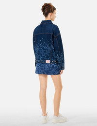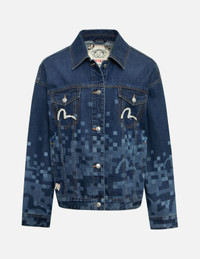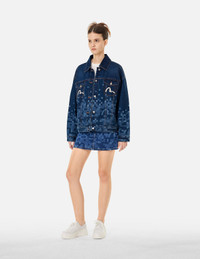 PIXEL SEAGULL EMBROIDERY AND PRINT OVERSIZED DENIM JACKET