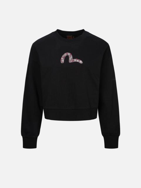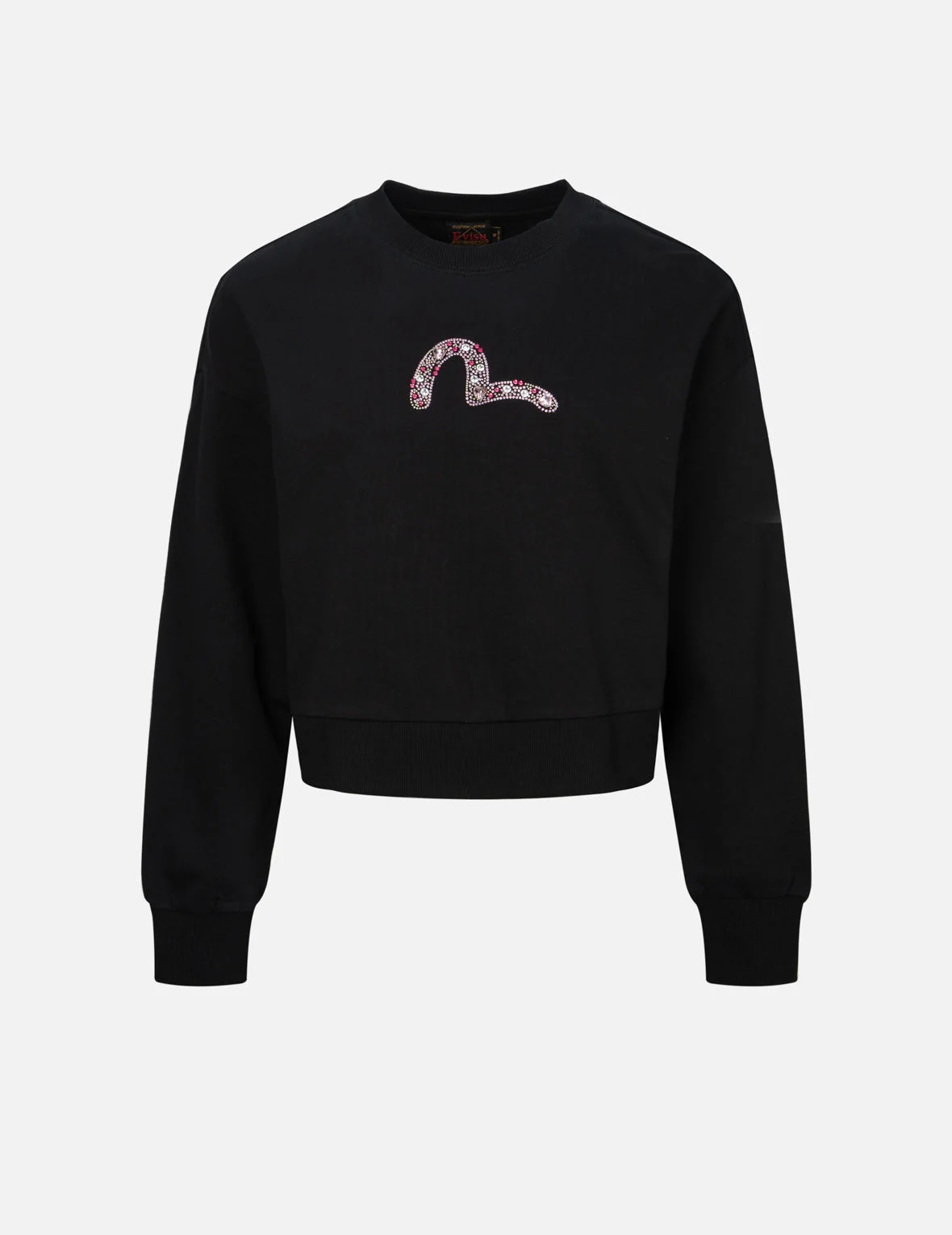 RHINESTONE SEAGULL CROPPED SWEATSHIRT