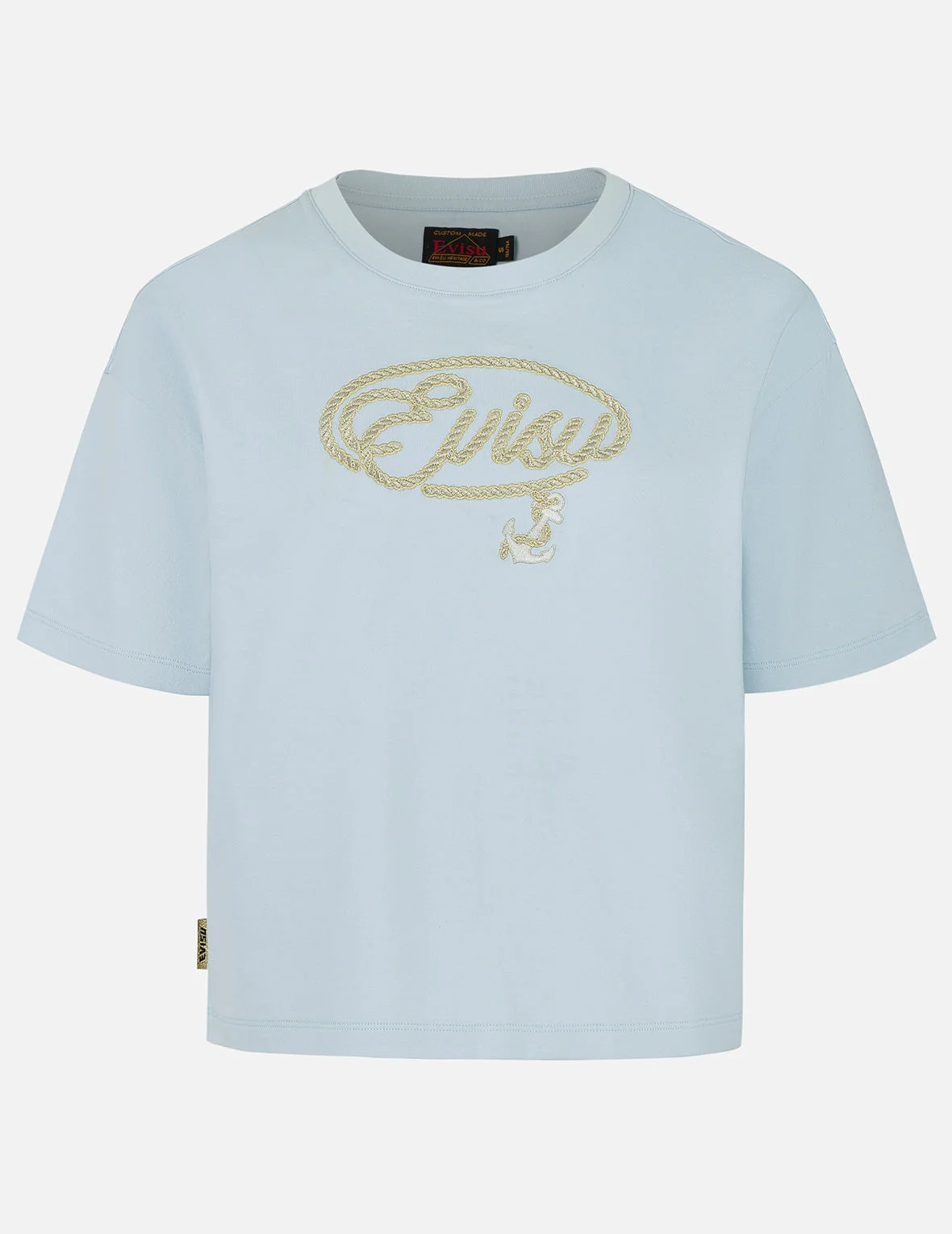 Rope Twist Logo and Anchor Embroidery Cropped T-Shirt