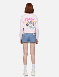 SEAGULL AND LOGO PRINT FASHION FIT DENIM SHORTS