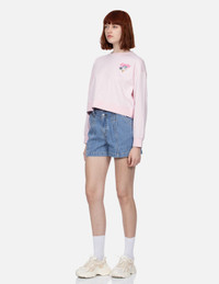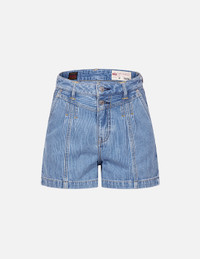2ESHTW4DS4017FFDN These A-line denim shorts enhance the lower body, creating longer and slimmer legs. Made of lyocell cotton denim with subtle vertical stripes, they offer a glossy sheen and pleasant texture. One back pocket features a white silicone brand logo, while the other features a white seagull pattern with thick, textured filling, adding richness to the overall look. FIT & STYLING: FASHION CARE MACHINE WASH COLD INSIDE OUT AND SEPARATELY GENTLE CYCLE DO NOT BLEACH HANG DRY ONLY COOL IRON ON REVERSE SIDE IF NEEDED STEAM IRONING MAY CAUSE IRREVERSIBLE DAMAGE DO NOT DRY CLEAN DO NOT IRON ON PRINT