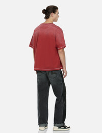 2EAMAM4JE1138BGDN The vintage wash and color block paneling are the biggest selling points of this season's collection! This jeans features a relaxed, comfortable fit that is also stylish. The front is designed with a panel of deep indigo twill cotton, which contrasts elegantly with the classic blue denim of the back, creating a visually appealing look that is effortless yet refined. - Baggy fit - 100% Cotton - Chino front panel design - Seagull applique embroidery with frayed edges - Button fly, 5 pockets - Godhead leather patch