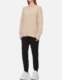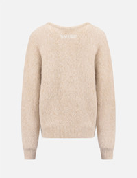 2EAHTW1SR382LFKN This beige sweater is embroidered with a seagull at chest and classic EVISU at the back, offering an elevated winter staple for the cool girls. The piece is crafted from a Alpaca-blend yarn to give you a comfortable wearing experience. - Loose fit - Seagull and EVISU logo embroidery - Crew neck, long sleeves, ribbed trims - Custom Made EVISU Heritage tag - Alpaca, Nylon and Elastane FIT & STYLING: LOOSE CARE DO NOT WASH DO NOT BLEACH DRY FLAT IN THE SHADE COOL IRON ON REVERSE SIDE IF NEEDED STEAM IRONING MAY CAUSE IRREVERSIBLE DAMAGED DRY CLEAN, MILD CYCLE