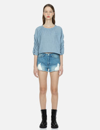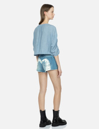 2ESHTW3BL106DPTP Refresh your wardrobe with EVISU’s latest drop of casual wear staples - made from stretch Tencel fabric, this blouse is cut for a drop shoulder profile with mid-length sleeves to help you endure the hot weather. Its front panel is punctuated with tone-on-tone seagull badge embroidery for extra coolness. - Drop shoulder fit - Seagull badge embroidery - Crew neck, mid-length sleeves - 70% Tencel, 29% Polyester, 1% Spandex CARE MACHINE WASH COLD INSIDE OUT AND SEPARATELY GENTLE CYCLE DO NOT BLEACH HANG DRY ONLY COOL IRON ON REVERSE SIDE IF NEEDED STEAM IRONING MAY CAUSE IRREVERSIBLE DAMAGE DO NOT DRY CLEAN