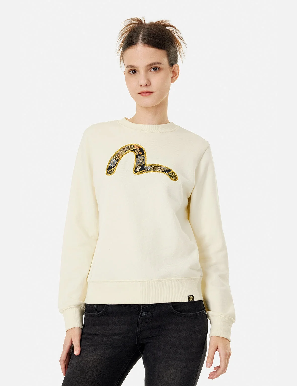 2EAHTW4SW4069XXCT With embroidery as the theme, this sweatshirt features a Seagull brocade applique on the front and logo embroidery on the back. Showcasing brand identity and exquisite embroidery craftsmanship, it adds a delicate and artistic atmosphere to this sweatshirt. FIT & STYLING: REGULAR CARE HAND WASH COLD MILD DETERGENT DO NOT BLEACH HANG DRY ONLY COOL IRON ON REVERSE SIDE IF NEEDED STEAM IRONING MAY CAUSE IRREVERSIBLE DAMAGE DO NOT DRY CLEAN DO NOT IRON ON PRINT