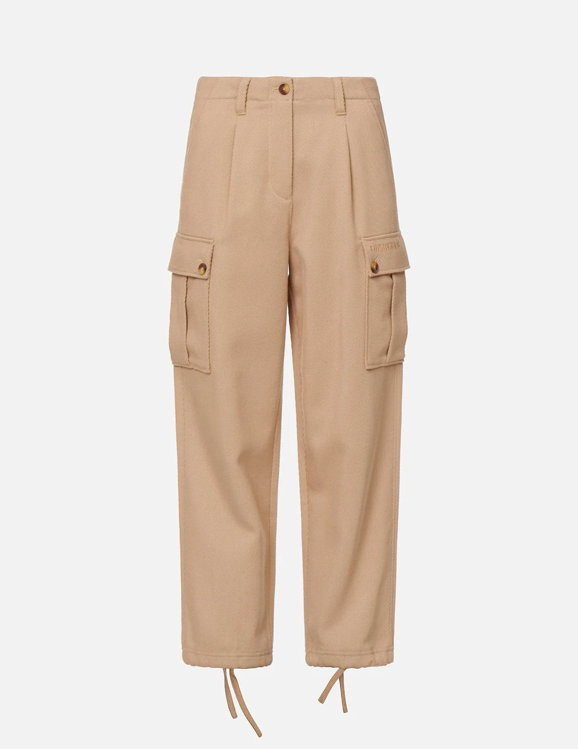 2EAGNW1PT266FFWX Showing you a more elegant side of EVISUKURO's collection, these cargo twill pants are cast in a camel beige tone and feature a tonal seagull embroidery for a soft, sophisticated look. They are also thoughtfully crafted with side adjusters so that you can create a customized fit for your body. - 40% Wool, 30% Nylon, 30% Rayon - Fashion fit - Seagull embroidery - Pleated front - 4 pockets and 2 cargo pockets