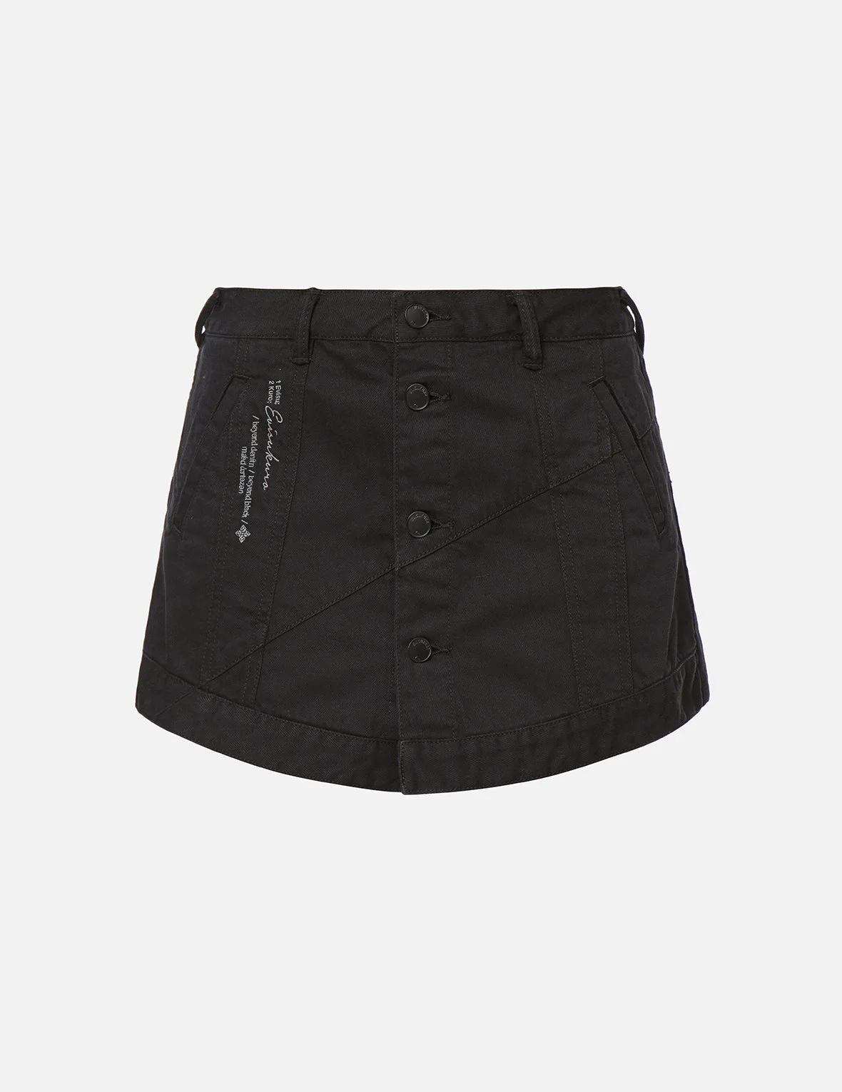 2ESGNW2DS286HWCT This skort features an overlapping button-up front panel to resemble a skirt. The front panel is embroidered with handwritten logo while the back pocket features a tactile seagull. - High-waist regular fit - Seagull, EVISUKURO logo and slogan embroidery - Button fly, 3 pockets