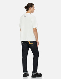 2EAHTM4JE104917FL The EVISU Seagull Print Pocket Jeans are a signature style from the brand. Crafted from premium cotton denim, featuring the brand's iconic white and earthy yellow Seagull printed on the rear pockets. Versatile enough for everyday wear, these jeans seamlessly transition from laid-back weekend to smart-casual occasions. - 2017 Carrot fit - 100% Cotton - Seagull print pockets - Button fly, 5 pockets - Godhead leather patch