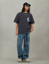 2EAHTM5JE1062BLDN These cargo jeans blend a relaxed balloon silhouette with functional side cargo pockets, seamlessly merging trendsetting style with practicality. The details feature meticulous Japanese Sashiko embroidery stitching, paired with patchwork elements that enhance the textured, vintage aesthetic, showcasing exceptional handmade craftsmanship. The back pockets are adorned with Sashiko-embroidered seagull and an EVISU logo embroidery tag, adding an artistic flair and brand distinction. Complete with a detachable hand-woven lanyard, it infuses personalized touches, allowing for versatile style switches while perfectly embodying a fusion of rebellion and sophistication. - Balloon fit - 100% Cotton - Shshiko Seagull - Detachable hand-woven lanyard - EVISU logo embroidery tag - Button fly, 6 pockets - Godhead leather patch