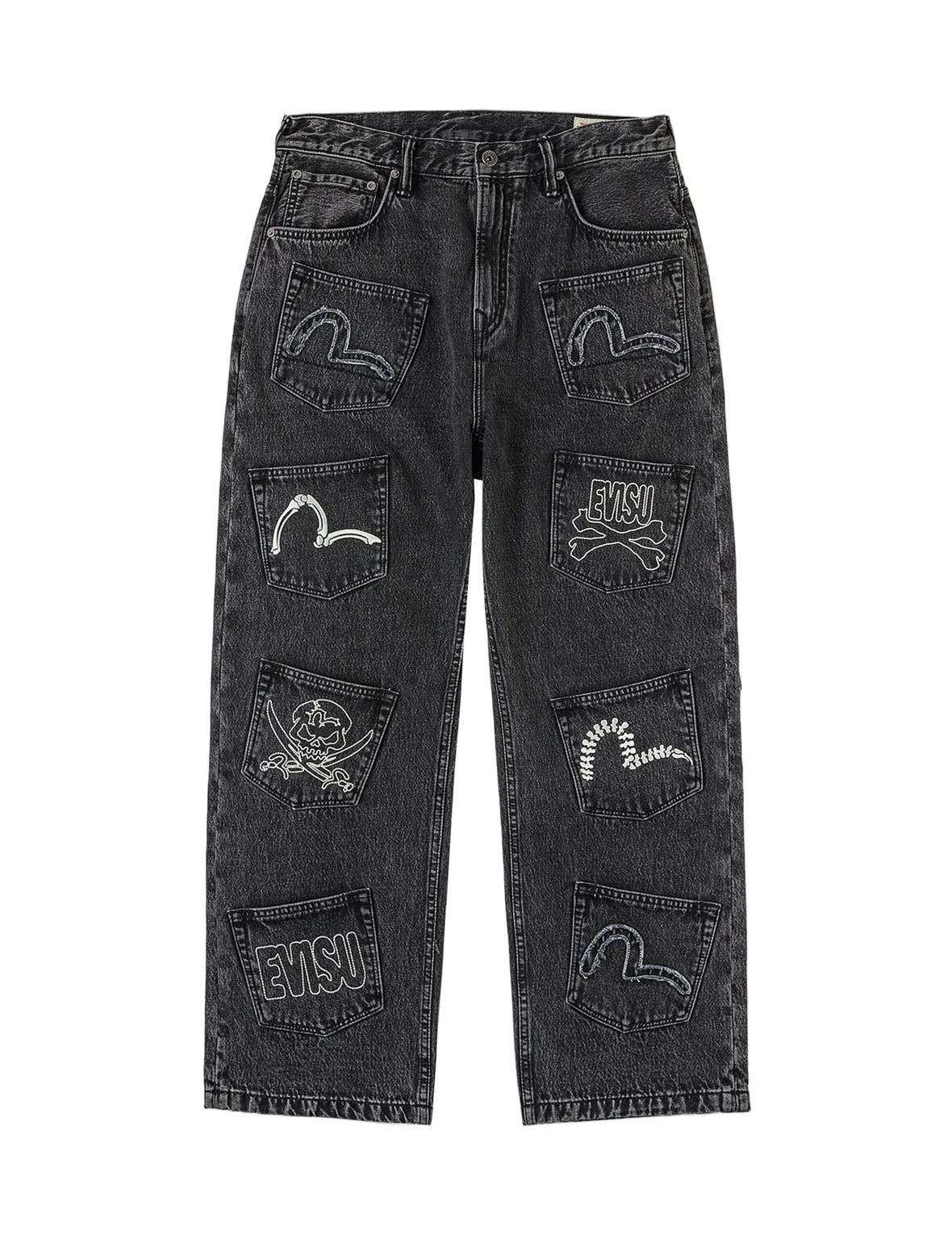 2ESHTM6JE7030FFDN Functional multi-pocket construction brings practical convenience to these jeans for urban dressing, blending utilitarian details with a modern streetwear aesthetic. Distressed seagull, skull and bone embroideries are featured on each pocket, expressing a rough yet refined sense of contrast. - Fashion fit - 100% Cotton - Pockets: 87% Polyester, 13% cotton - Multi-pocket design - Zip fly, 13 pockets