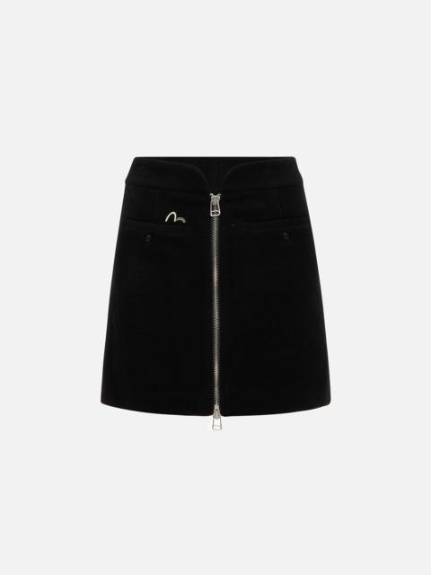 2EAGNW2SK251XXWP An elevated wardrobe staple under the deft hand of EVISUKURO, this skirt is detailed with logo and slogan embroidered waistband. Let this flattering piece bring out the best of you by matching it with a crop top. - 50% Wool, 50% Polyester - Regular fit - Front zip - Logo and slogan embroidered waistband - Seagull embroidery