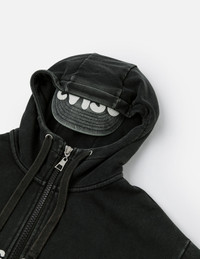 2EAHTU5SW4005OSCT This hooded jacket features a unisex design with an oversized fit that flatters all body types, making it perfect for both men and women. The black main fabric is crafted with multiple wash techniques, showcasing a natural faded effect and rich vintage charm. Side pockets and a dual-zip front closure blend practicality with a bold fashion statement. The standout feature is the innovative real hat clipped to the hood, creating a faux double-layer look when worn—instantly elevating this everyday sweatshirt into a striking street-style icon radiating powerful trendy vibes! - Oversized - 57% Cotton, 43% Polyester - "Everything Changes But Not EVISU" slogan print - Two-way zip, 2 pockets and ribbed trims - Drawstring hood