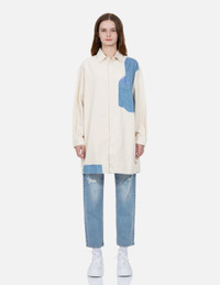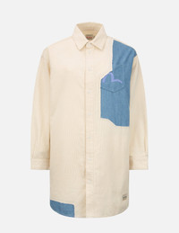 2EAHTW2SZ167OSCD Designed with tear-off denim blocking, this ecru corduroy shirt dress is cut for a laid-back oversize profile. The chest pocket is adorned with seagull embroidery to channel brand essence. - Oversize profile - Fabric blocking design, seagull embroidery - Button fastening, long sleeves - Custom Made EVISU Heritage tag - Fabric A: 80% Cotton, 20% Polyester; Fabric B: 100% Cotton FIT & STYLING: OVERSIZE CARE MACHINE WASH COLD INSIDE OUT AND SEPARATELY GENTLE CYCLE DO NOT BLEACH HANG DRY ONLY COOL IRON ON REVERSE SIDE IF NEEDED STEAM IRONING MAY CAUSE IRREVERSIBLE DAMAGE DO NOT DRY CLEAN