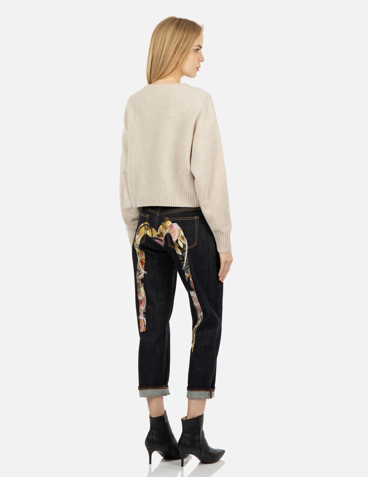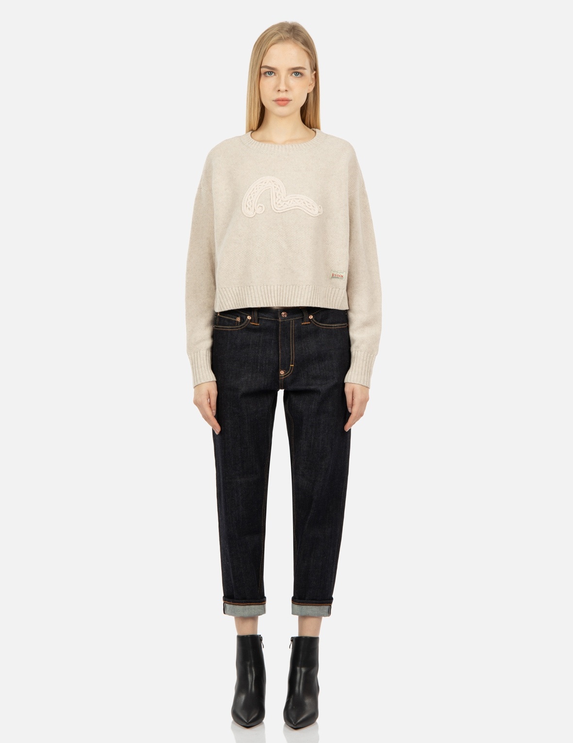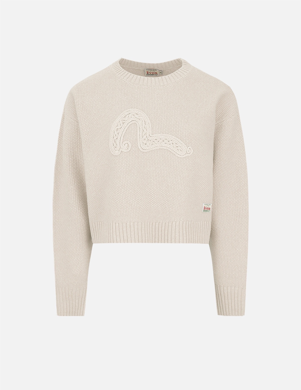 2EAHTW2SR358LFWN EVISU’s lambswool-blend crew-neck sweater has a cropped length to style with loose fitting jeans. It is punctuated with a texture seagull knitted detail of the same tone across the chest. - Loose fit in cropped length - Texture seagull knitted details - Crew neck, long sleeves, ribbed trims - Custom Made EVISU Heritage tag - 50% Lambswool, 50% Nylon FIT & STYLING: LOOSE CARE HAND WASH DO NOT BLEACH RESHAPE AND LAY FLAT TO DRY COOL IRON ON REVERSE SIDE IF NEEDED STEAM IRONING MAY CAUSE IRREVERSIBLE DAMAGED DO NOT DRY CLEAN