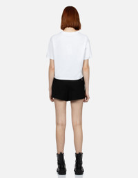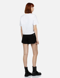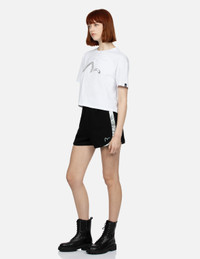2ESGNW4ST6057XXCT The Y2K trend is back with these shorts blending vintage futurism and street fashion. The black and silver color scheme, sleek curved cutouts, and embroidered seagull patterns on the front create a unique look. The iridescent Kamon emblem on the back pocket adds to the overall appeal. - Regular Fit - 60% Rayon, 35% Nylon, 5% Spx - Two-Layer design - Iridescent Kamon emblem
