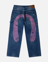 2EAEJM5JE6109RXDN These relaxed-fit washed denim jeans ignite a streetwear revolution with their deep gray tone! The iconic faded Daicock print on the back exudes rich vintage charm. Crafted with washing techniques, paired with hand-distressed elements and splash-ink design, it delivers a rugged, naturally worn texture and an artistic flair. The durable cotton fabric ensures comfort, empowering you to effortlessly dominate modern street style! - Relax fit - 100% Cotton - Cracked Daicock print - Distressed and splash-ink details - Button fly, 5 pockets - Godhead leather patch
